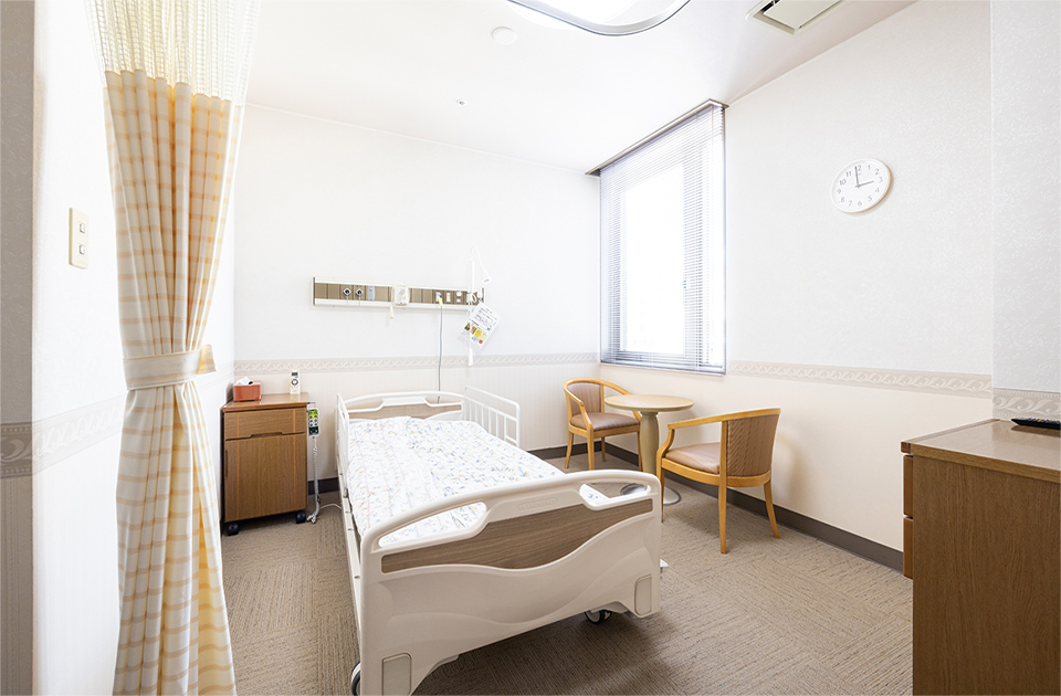 患者様のプライバシーを尊重し、快適な入院生活を送っていただくため、ベット数19床のうち、個室を11室ご用意しております。面会時間は午後8時までとなっています。ご了承ください。